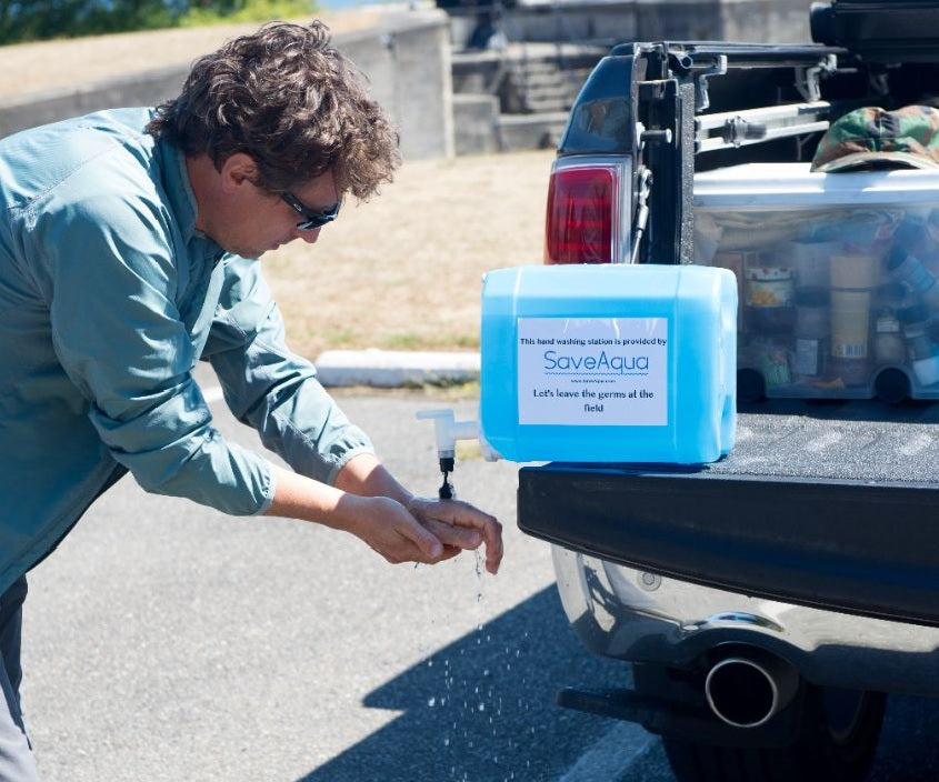 SaveAqua tap can be used to create washing stations in locations where there is no typical water infrastructure.